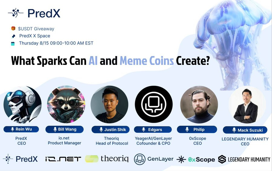 Our CEO Phillip Torres shared his thoughts on AI and Memecoins during a recent X/Twitter Space hosted by PredX.ai and joined by more Web3 experts.